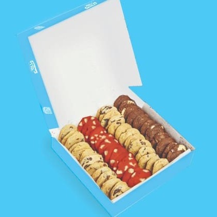 Monte sua caixa com 20 mini cookies (20g). **Para escolher sabores variados selecione os sabores desejados no complemento do pedido ou você também pode nos enviar na observação do pedido**