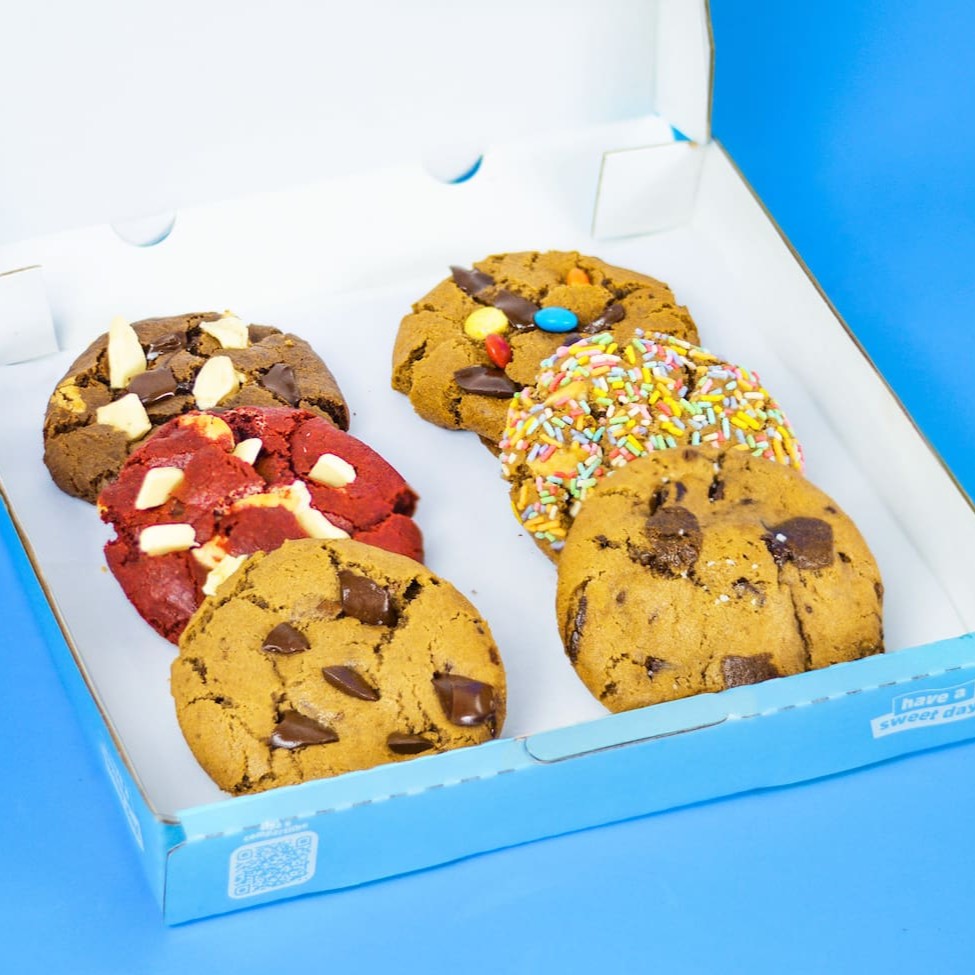 Delicie-se com o nosso combo com 6 cookies, neste combo você pode criar sua própria caixa personalizada com 6 cookies incríveis. Cada cookie é uma explosão de sabor e você pode escolher entre mais de 12 opções. O combo é perfeito para compartilhar ou simplesmente para saborear sozinho! Caso queira presentear também oferecemos a opção de envio da sua mensagem com o pedido, para isso é só enviar na