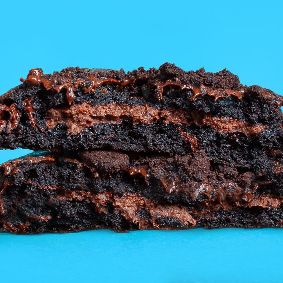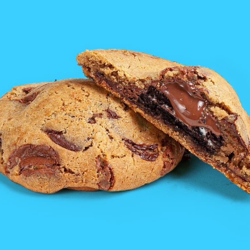 Cookie recheado com muuuita Nutella, feito com gotas de chocolate meio amargo e ao leite. Crocante por fora, cremoso por dentro!
