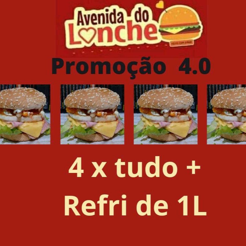 4 X -bacon + 2 X -tudos + Guaraná antártica 1 litro