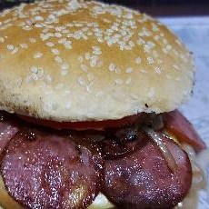 Pão , hambúrguer 56gr , queijo , calabresas , cebola na chapa , alface e tomate