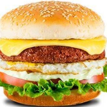 Pão , hamburguer suculento, queijo , ovo e maionese da casa.