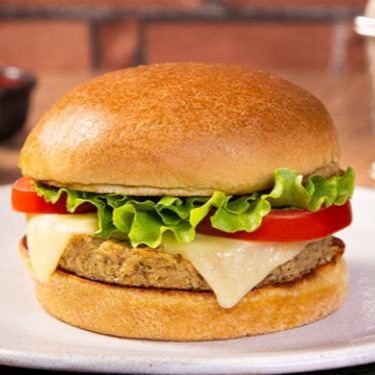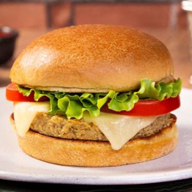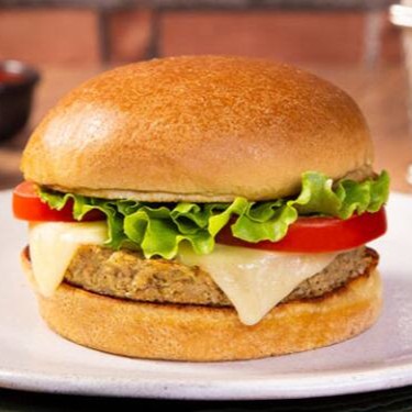 Pão, hamburguer suculento, queijo, alface , tomate e maionese da casa.