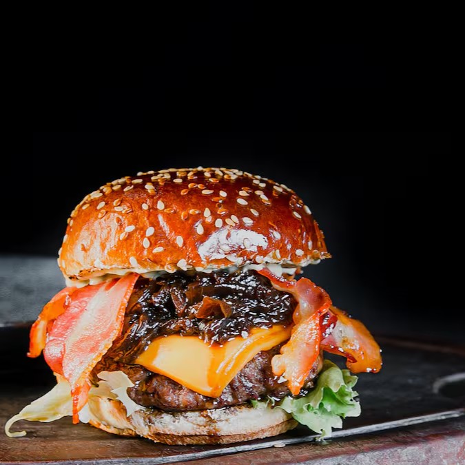 Pão a escolha do cliente,180g de costela bovina Angus,alface,cebola roxa crua,geléia de bacon e maionese da casa.