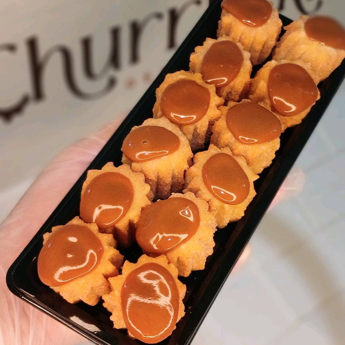 20 unidades de mini churros tradicionais Com açúcar e canela acompanha •Doce de sua escolha •Mais confeito de sua escolha