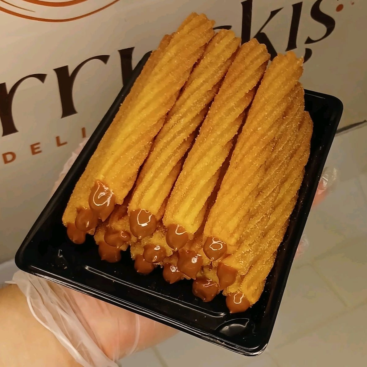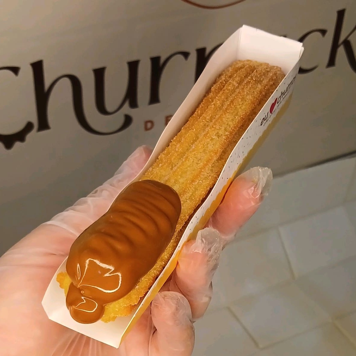 1 unidade de churros tradicional sequinho e crocante com açúcar e canela •Recheio somente por dentro