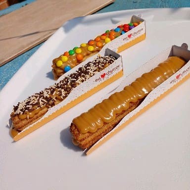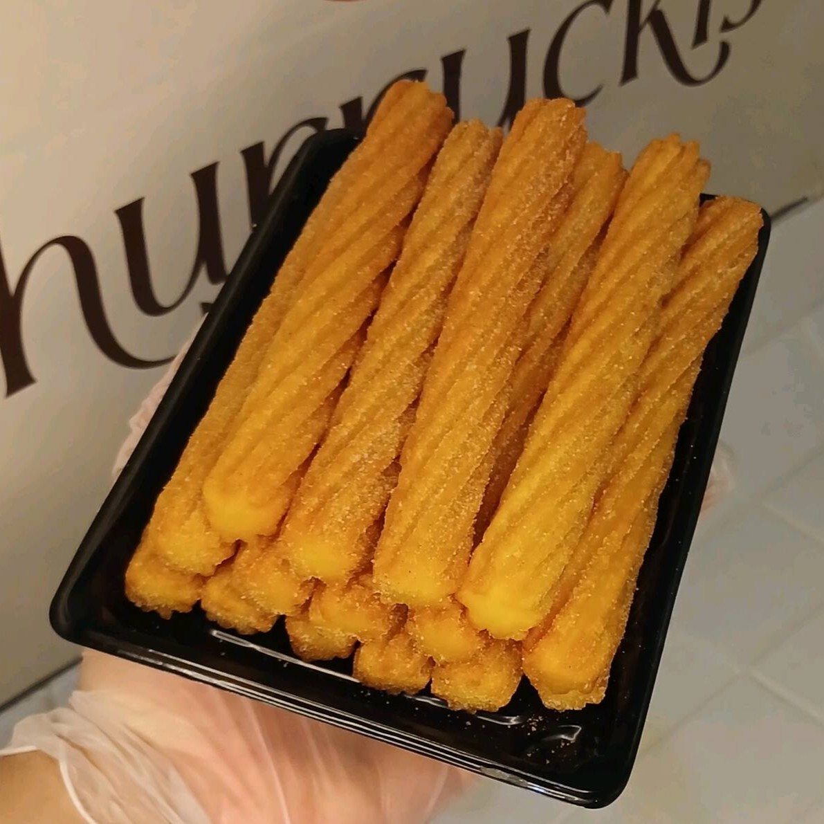 (2) Unidade de churros tradicional sequinho e crocante com açúcar e canela •Recheio somente por dentro