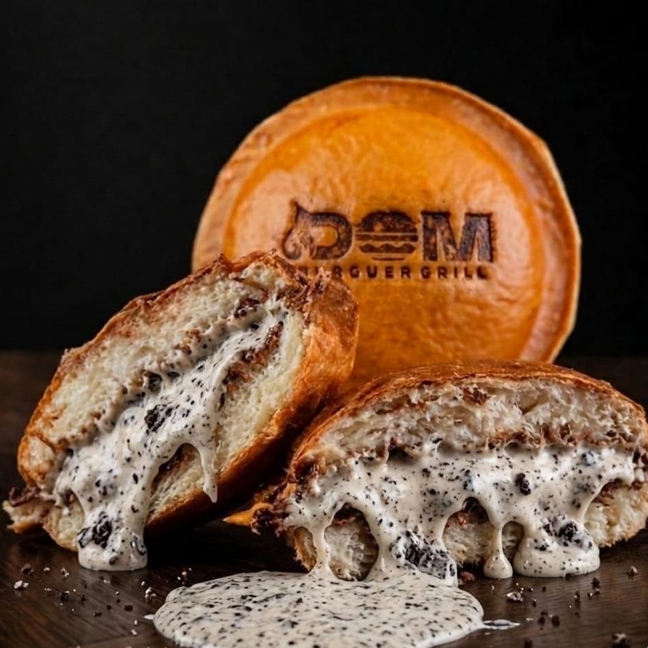 Pão de brioche 120g em formato de Disco, recheado com creme de Negresco