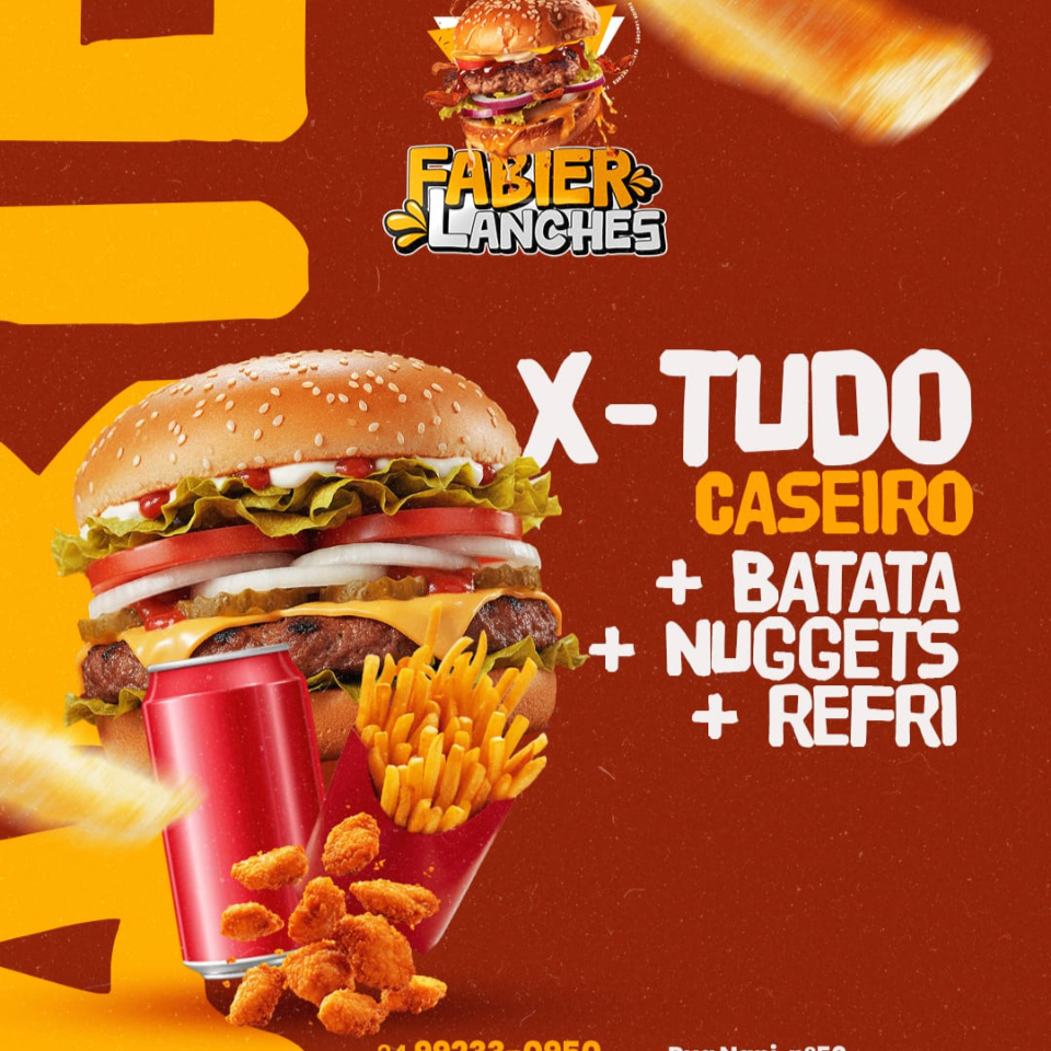 X-tudo Caseiro + Batata + Nuggets + Refri Lata