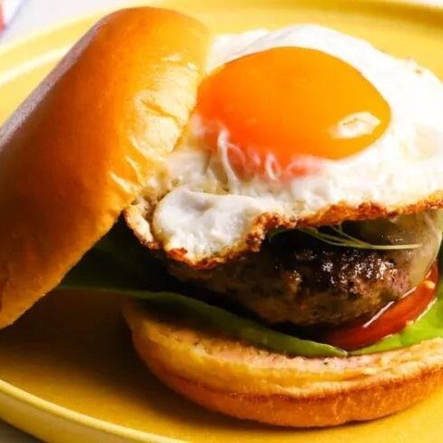 Pão gergelim, hamb. Acém c/ peito 100gr, ovo, muçarela/cheddar, maionese da casa