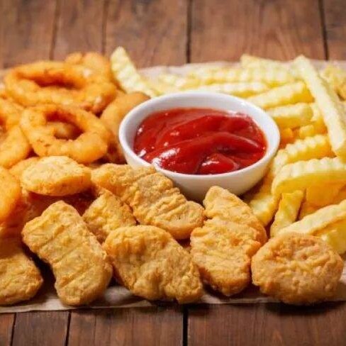 Batata 400gr, anéis de cebola, bacon, calabresa, mussarela, parmesão, nugget, maionese da casa