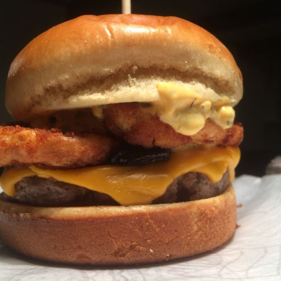 Pão brioche, blend de 120g, duplo cheddar fatiado, cebola empanada, cebola caramelizada, molho especial e maionese artesanal.