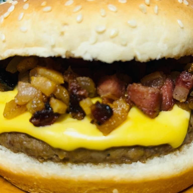 Pão brioche, blend 120g, mussarela, Catupiry, geleia de pimenta, bacon e maionese artesanal.