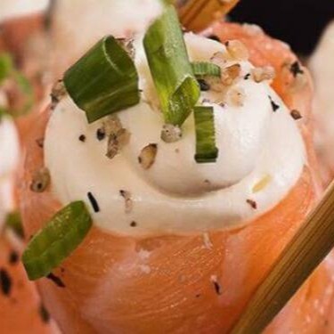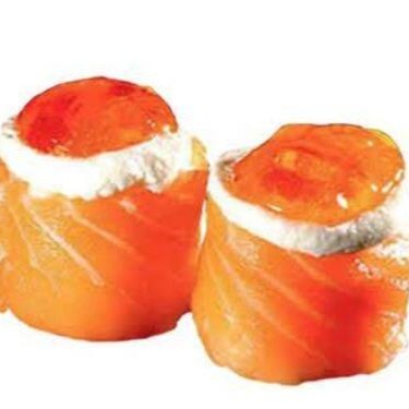 5 unidades, salmão, cream cheese e geleia de pimenta.