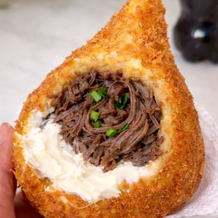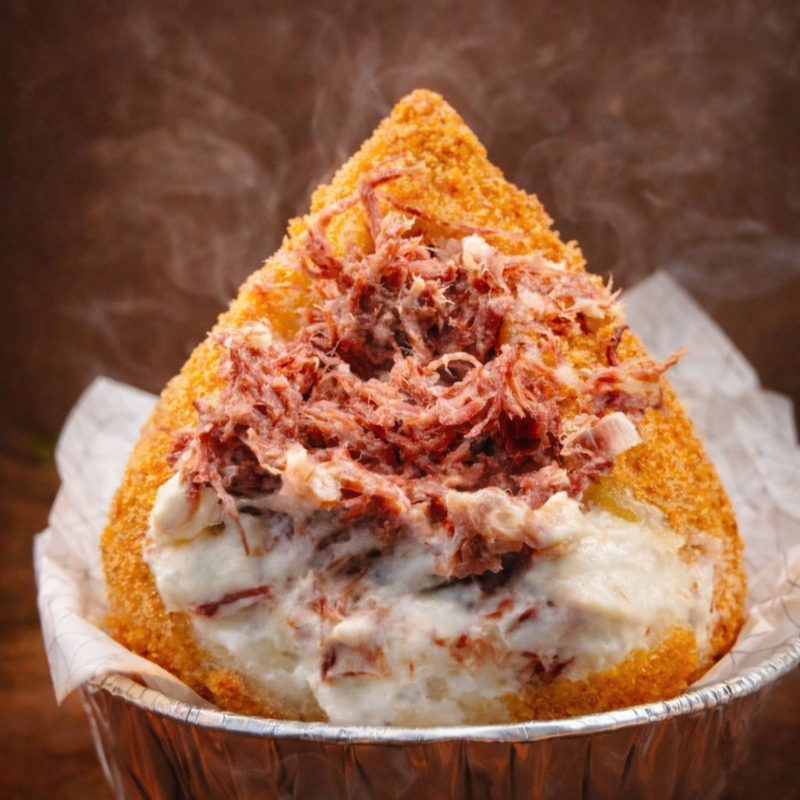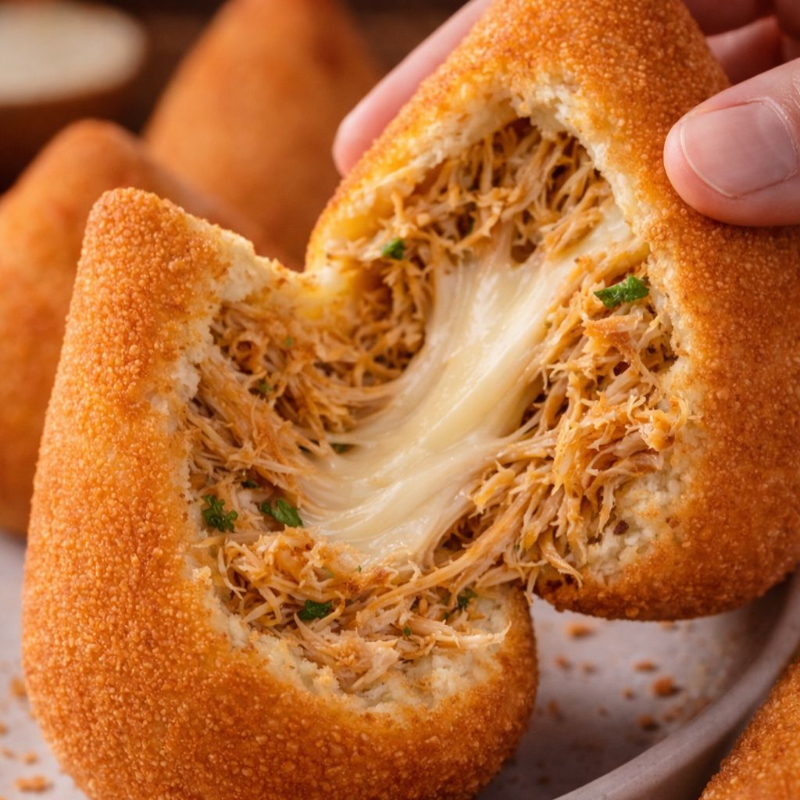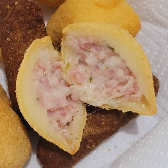 deliciosas coxinhas tamanho de festa massa macia por dentro e crocante por fora com recheio bem temperado