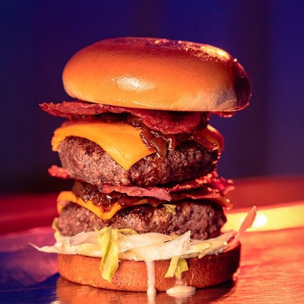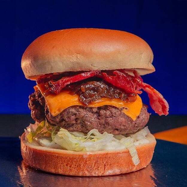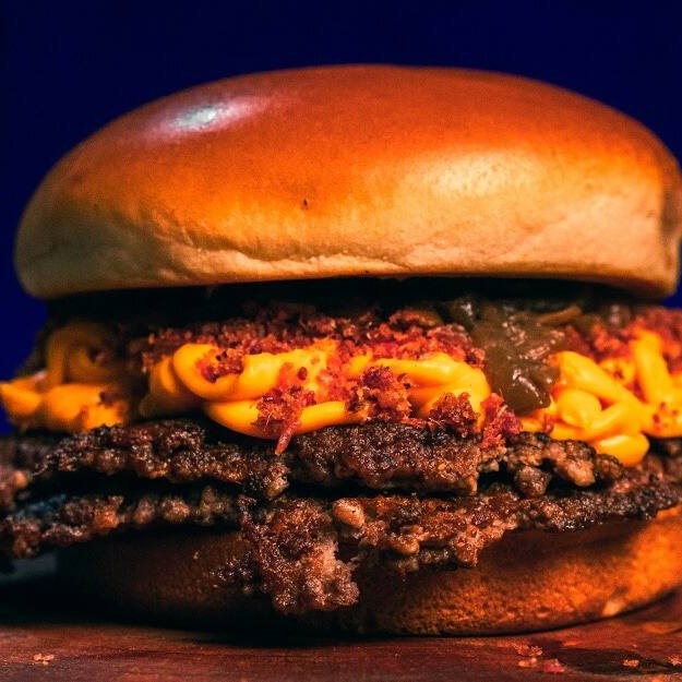 Pão brioche, 2 smash grelhado e saboroso de 90 g cada, creme de cheddar, farofa de bacon no capricho e cebola caramelizada. (um novo sabor que irá fazer muito sucesso por aqui)
