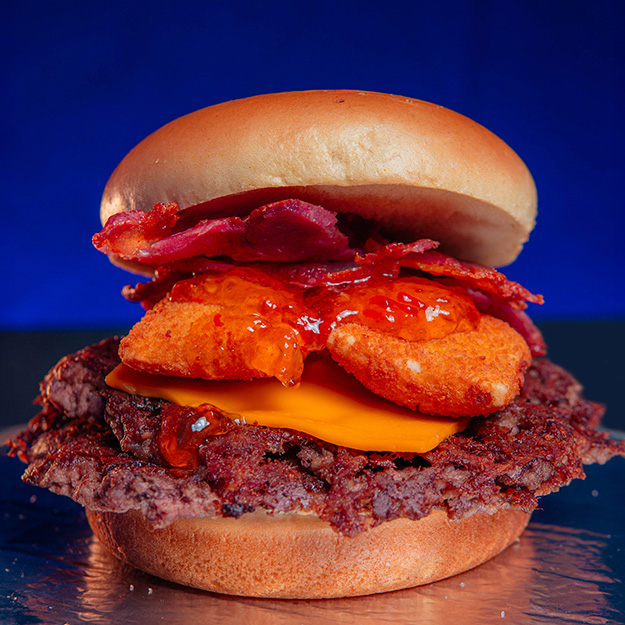 Pão brioche, 180 gramas de carne, aquela fatia caprichada de queijo coalho chapeado, couve crispy fininha, anel de cebola, bacon em tiras no capricho e maionese temperada da casa. Um sabor absurdo que vai te surpreender.