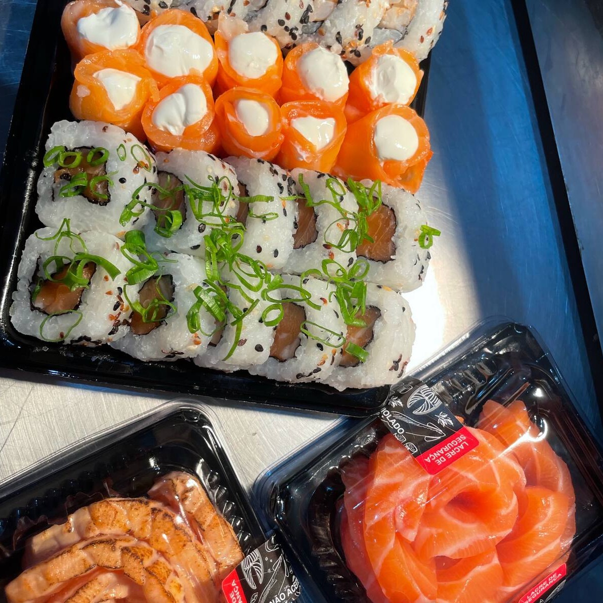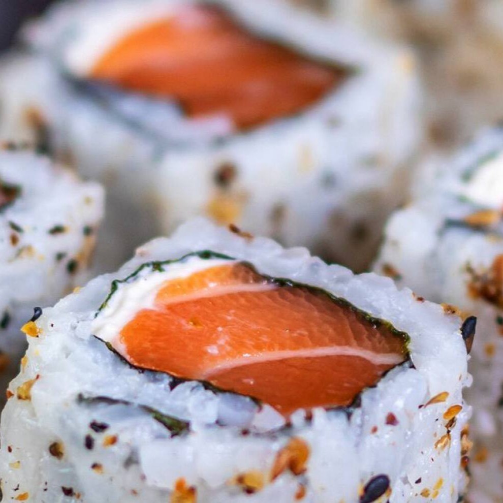 Nori, arroz, cream cheese, cebolinha e salmão