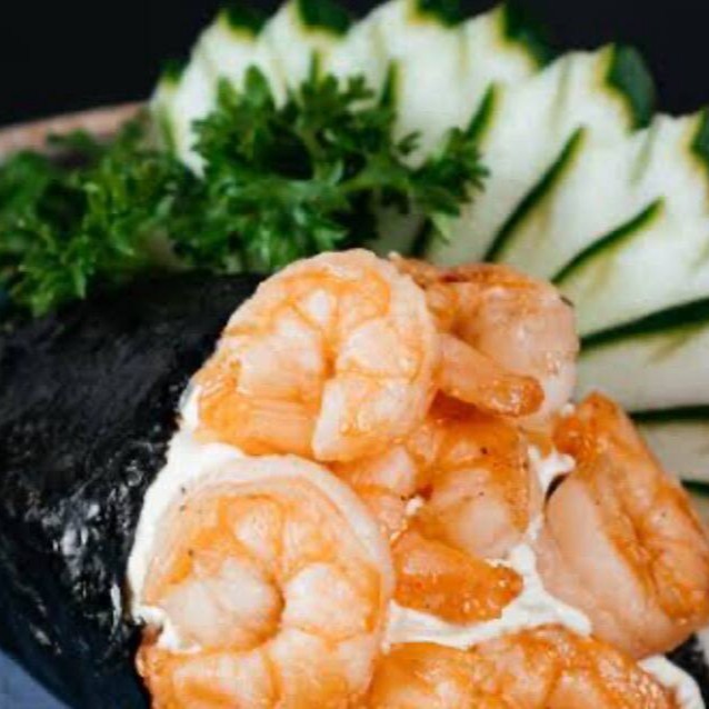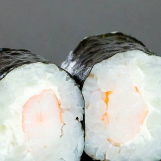 Nori, arroz, cream cheese e camarão