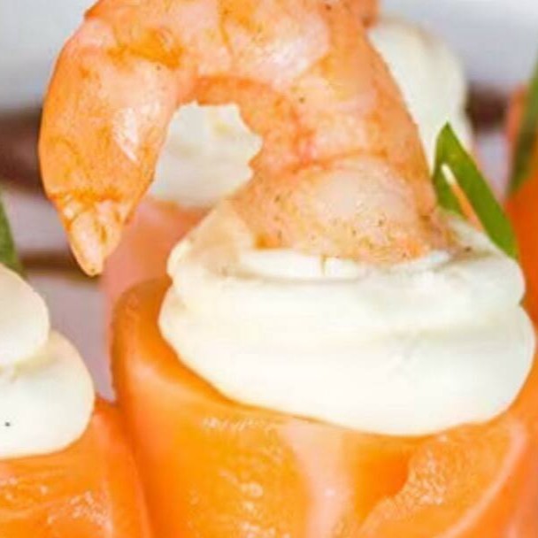 Fatia de salmão enrolado com cream cheese e Camarão. (4 unidades)