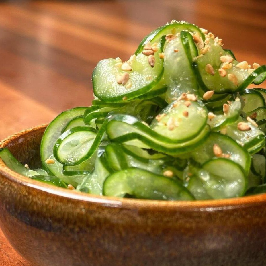 Pepino japonês, kani, molho especial e gergelim.