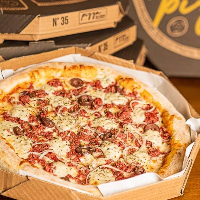 Acompanha: Molho Pelatti italiano, muçarela, calabresa especial, cebola, azeitona preta, Catupiry Original e orégano.