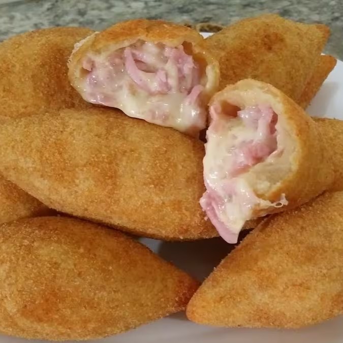 Salgado com massa feita de feijoada ,recheio de bacon, calabresa e couve. Crocante por fora e cremoso por dentro.