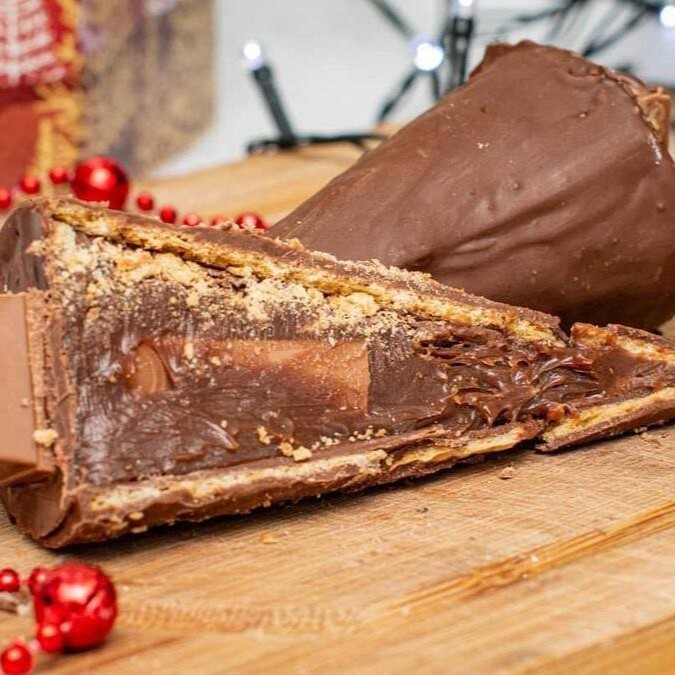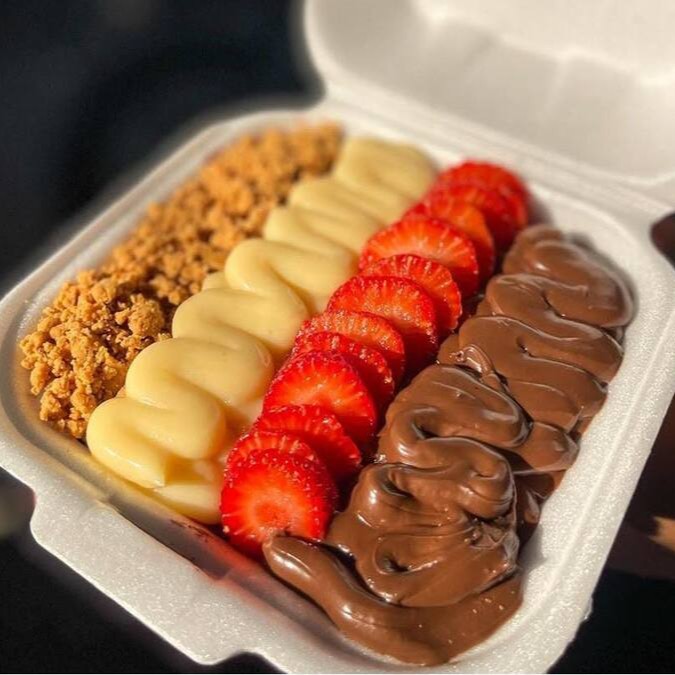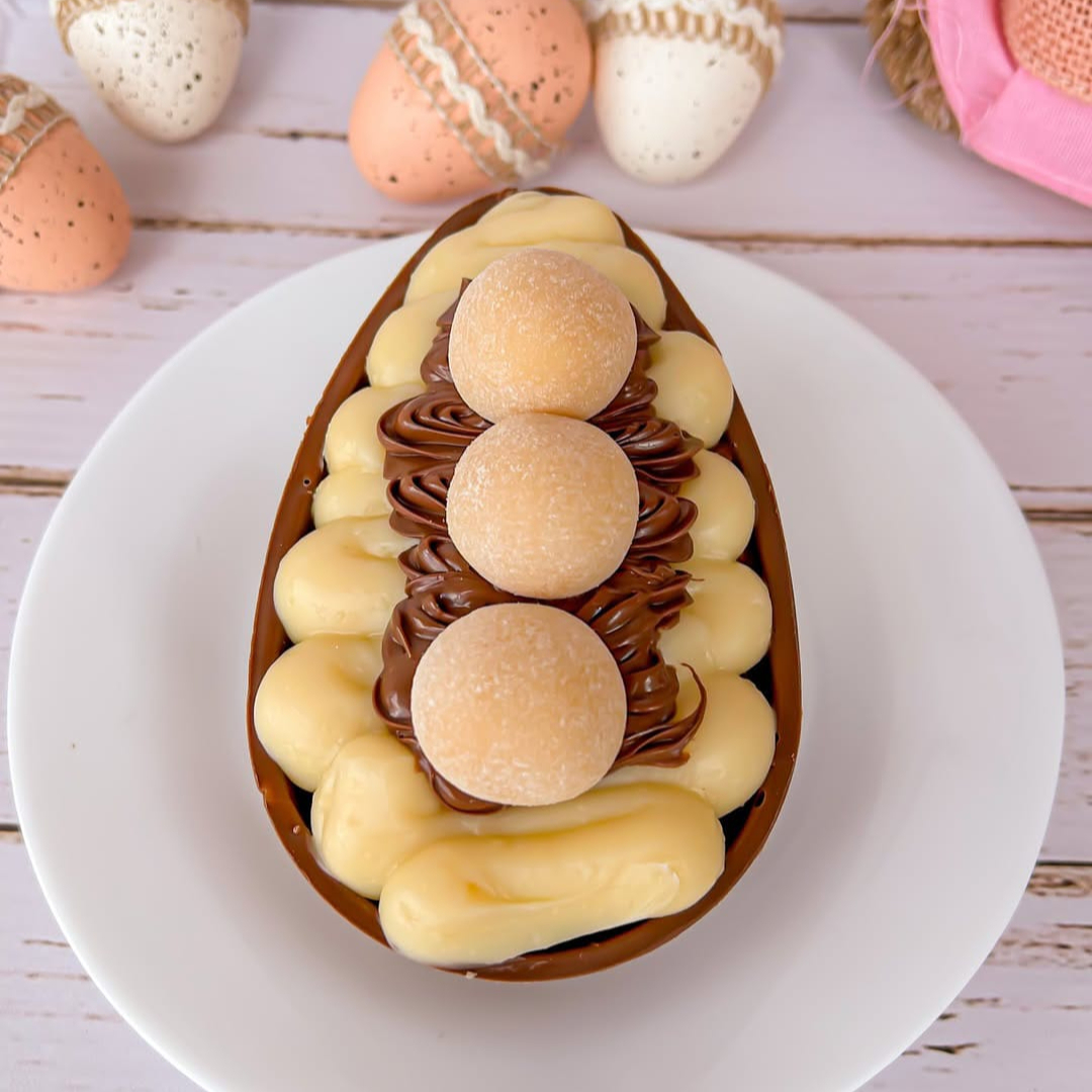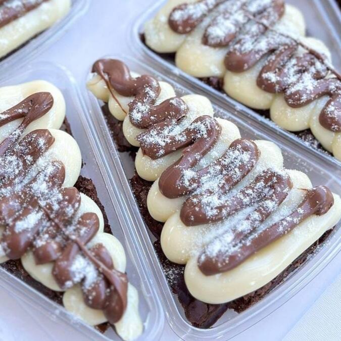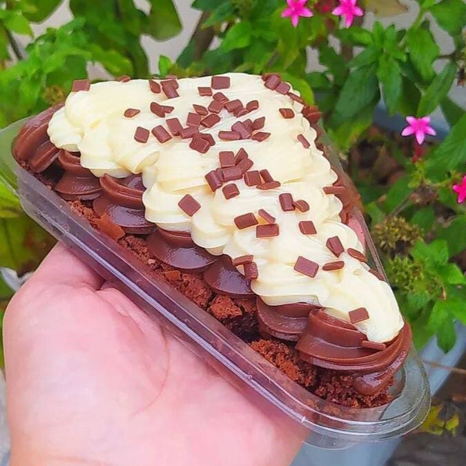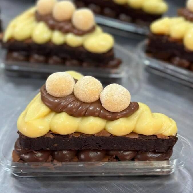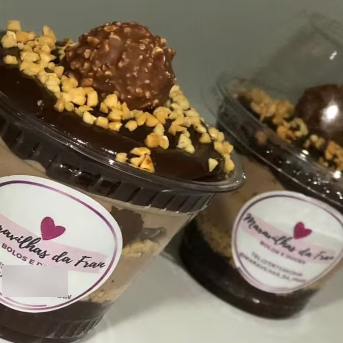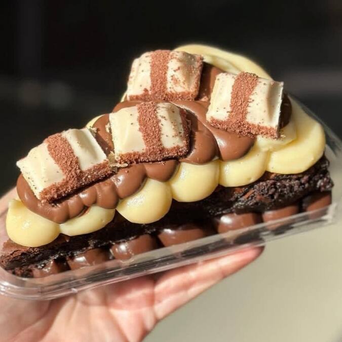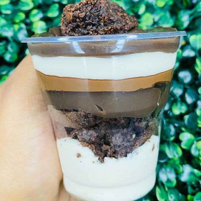 Com uma camada do nosso Mousse de Ninho, Brownie molhadinho, Brigadeiro 50% cacau, Nutella, e mais camadas de Mousse de Ninho e Brigadeiro 50% cacau.