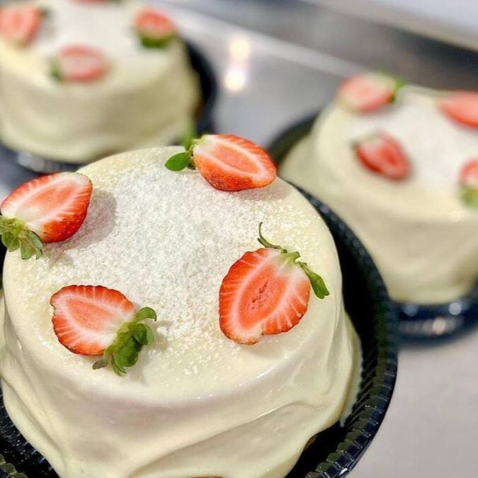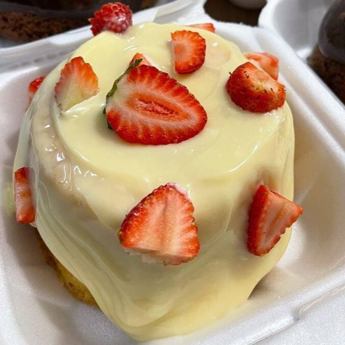 Massa fofinha de Ninho com essência de baunilha, Morangos ao Meio e coberto com muito Brigadeiro de Ninho. Finalizado com Leite em Pó Ninho e Morangos.