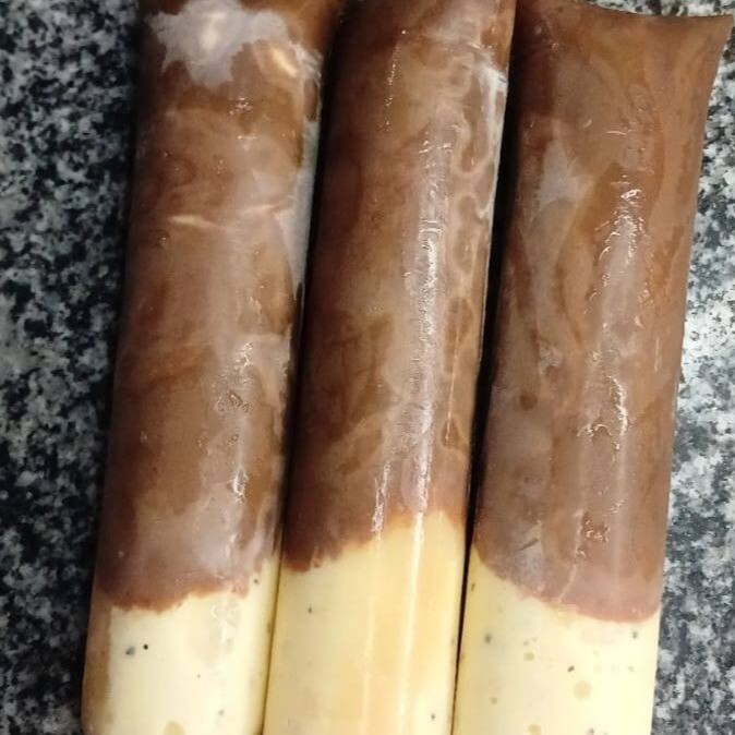 Esse é o sacolé ideal pra quem gosta de Chocolate e Coco.