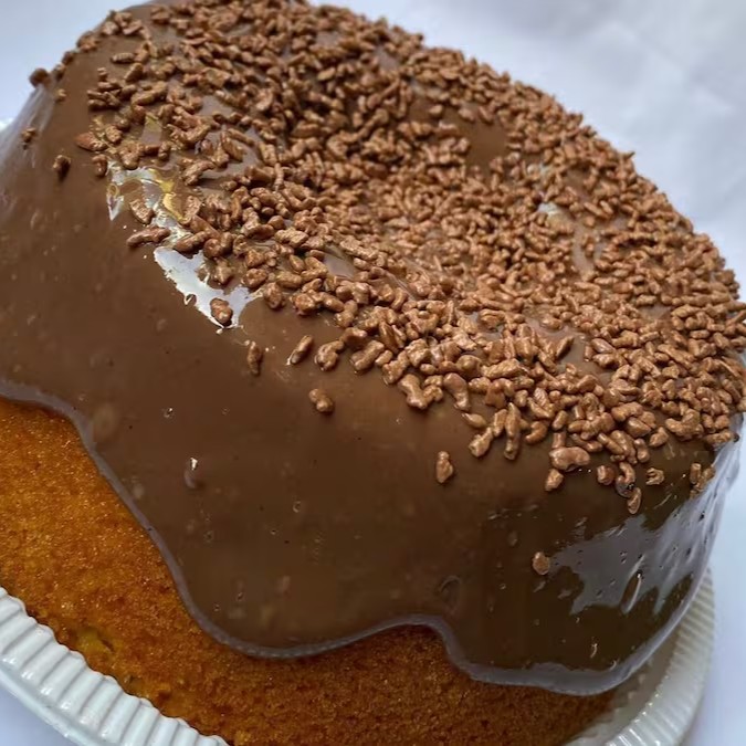 Bolo de Cenoura Fofinho com Cobertura de Brigadeiro Cremoso.