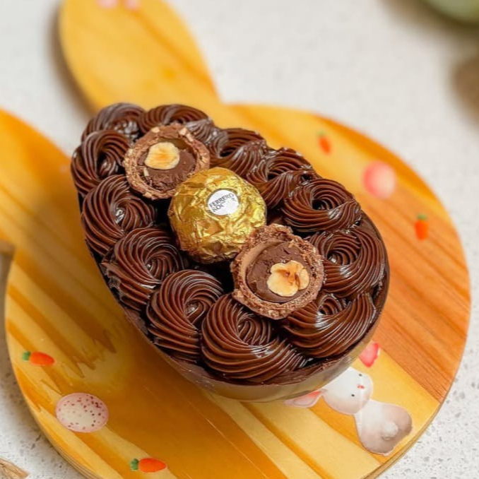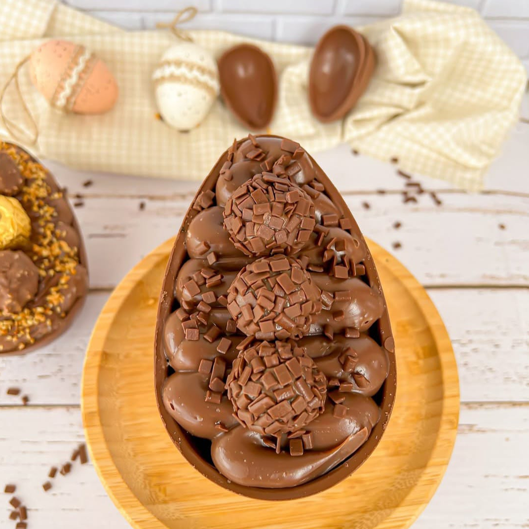 Montagem: Brigadeiro Gourmet, Amendoim Picado, Bombom Ferrero Rocher Picado, Creme de Brigadeiro.