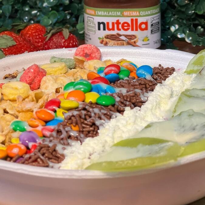 300ml de muita perfeição com essa combinação irresistível. Nutella + Leite Ninho + Leite Moça e uma Fruta de sua escolha.
