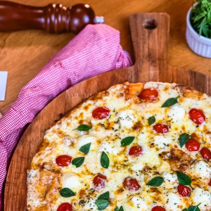 A Margherita da Casa de 25 cm é uma estrela da categoria 'Queridinhas', perfeitamente adequada para servir uma pessoa. Este prato apresenta um irresistível molho exclusivo da casa, ricamente espalhado sobre uma base de massa fina e crocante. Cobrimos o molho com uma generosa camada de mussarela derretida e suculentos tomates cereja. O toque final vem com o sabor fresco do manjericão, a cremosidade do Catupiry e uma pitada de orégano para realçar todos os sabores. É uma combinação perfeita que vai fazer você se apaixonar à primeira mordida!