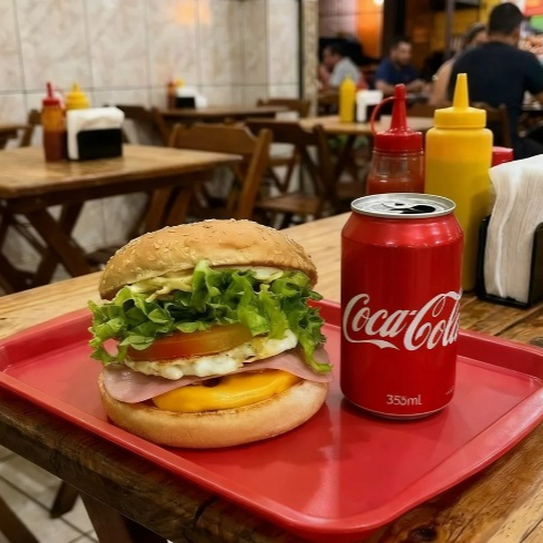 Pão macio, hambúrguer 56g, queijo, bacon crocante, ovo e nossa maionese da casa. Sabor completo em cada mordida!