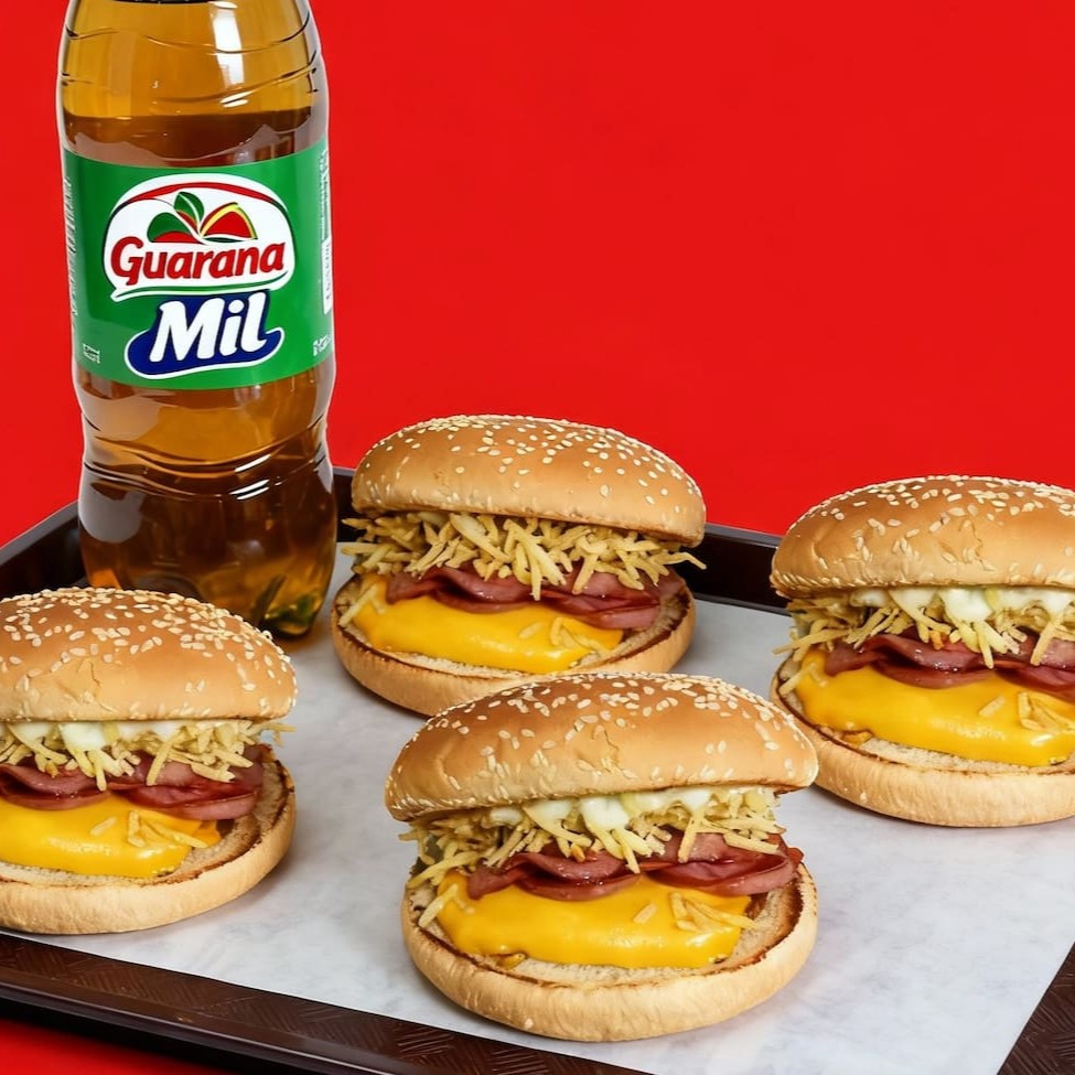 A fome em grupo tem solução! Leve 4 X-Calabresa ou 4 X-Bacon e um Guaraná Mil 2l pra completar. Um combo gigante, feito pra compartilhar e saborear com estilo !!!