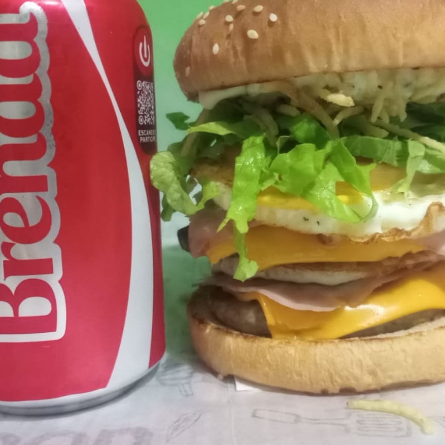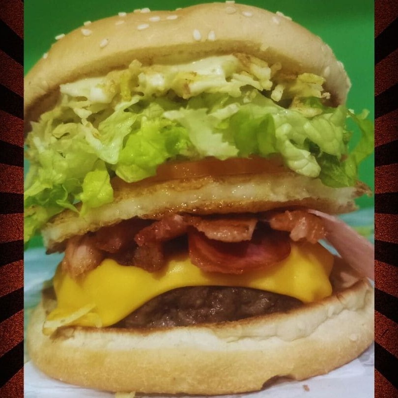 Pão macio, hambúrguer 56g, queijo, bacon crocante, ovo e nossa maionese da casa. Sabor completo em cada mordida!