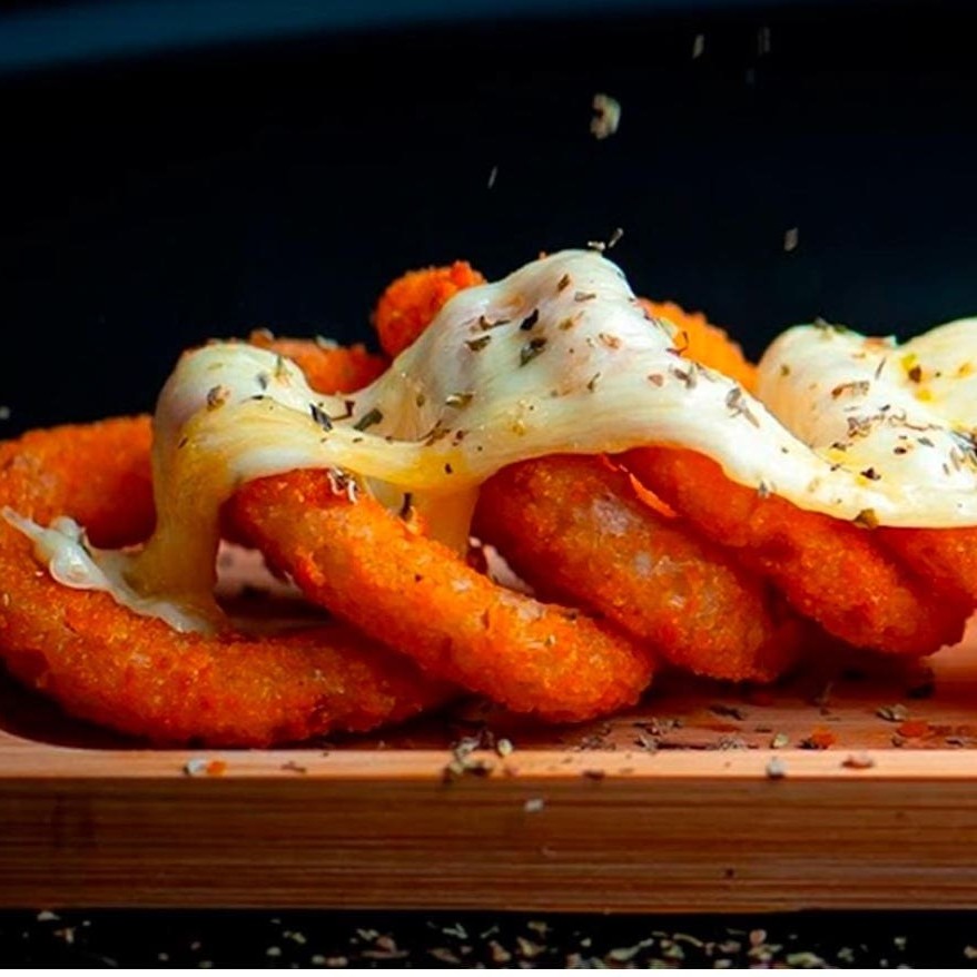 10 Unidades de Anéis de Cebola Empanados, Acompanhados de um Delicioso Molho à sua Escolha.