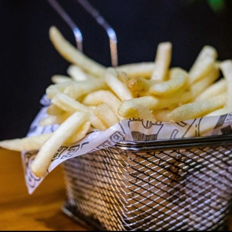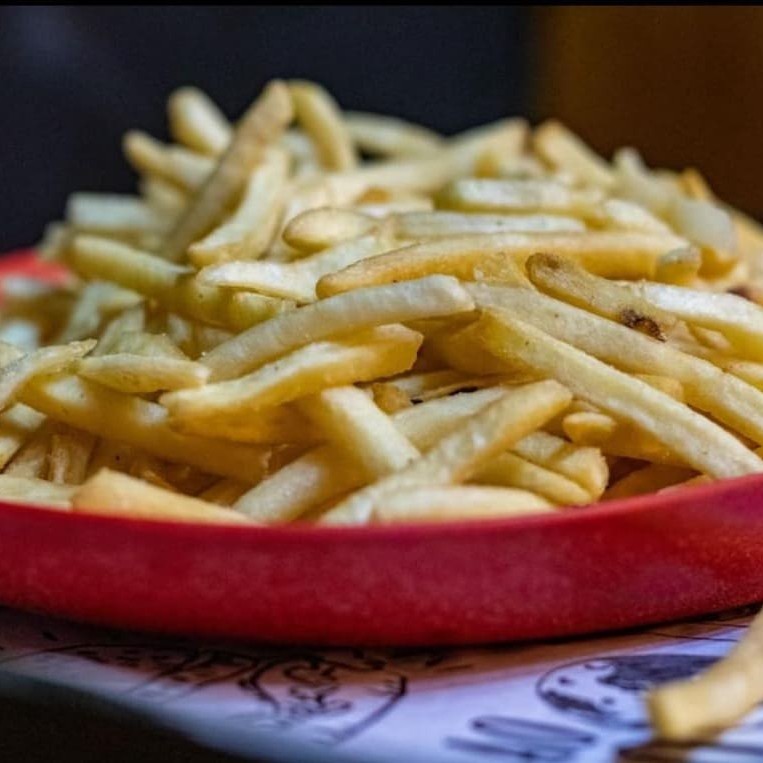 Aproximadamente 250g de Fritas, Mussarela Derretida e Bacon.