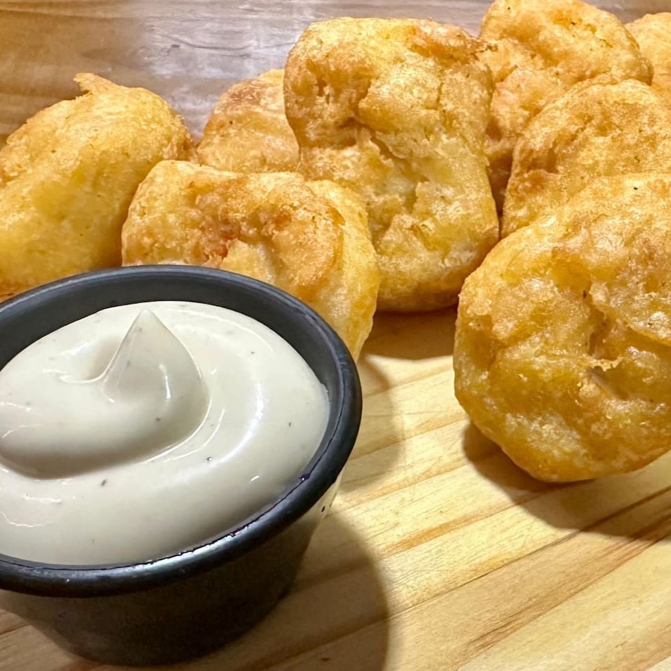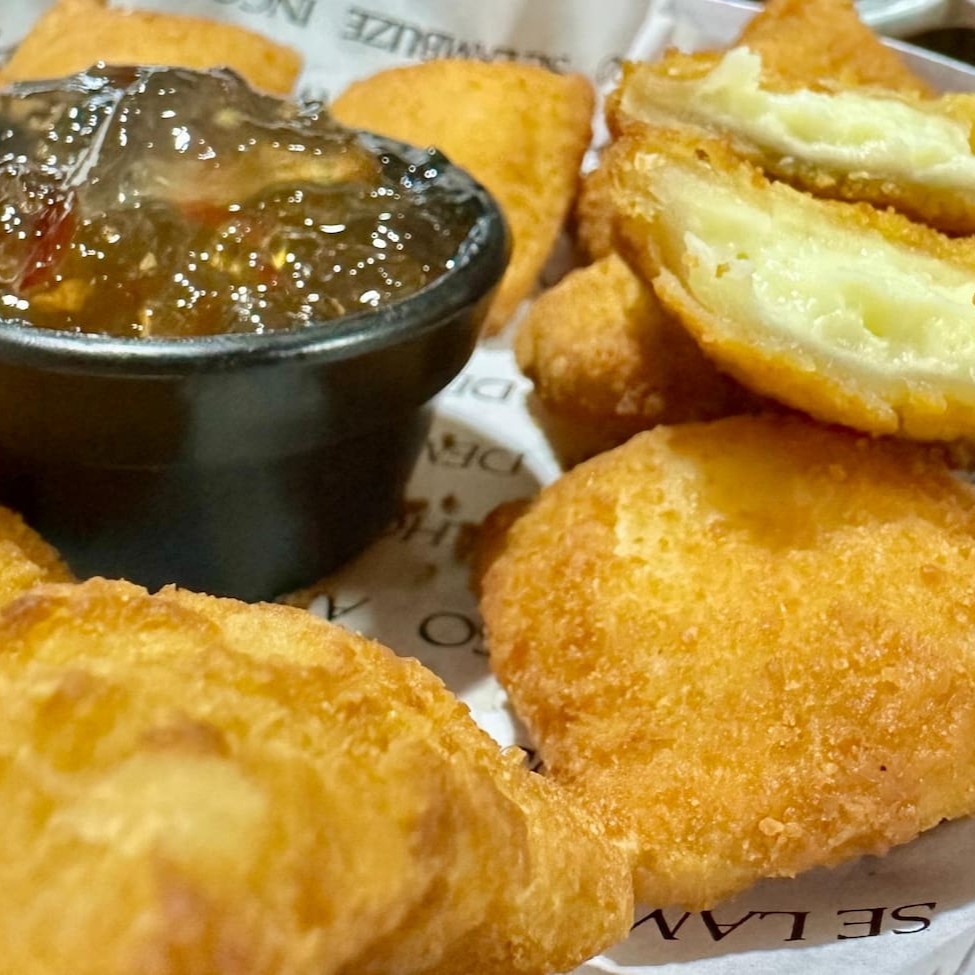 10 Unidades das mais Deliciosas Almofadinhas de Queijo Gouda. Acompanhadas de um Delicioso Molho à sua Escolha.