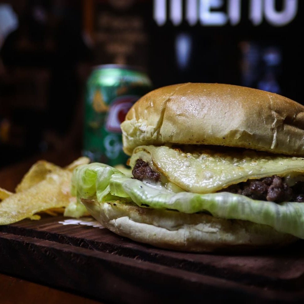 Pão Brioche, Duplo Smash Burguer 80g, Mussarela derretida, e Maionese da Casa.