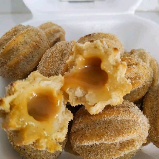 Porção com 10 unidades. Mini churros de doce de leite empanados em açúcar e canela.