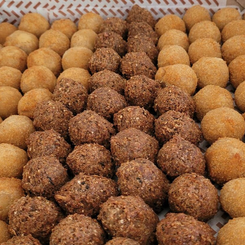 50 salgadinhos tradicionais + 20 bolinhos de bacalhau