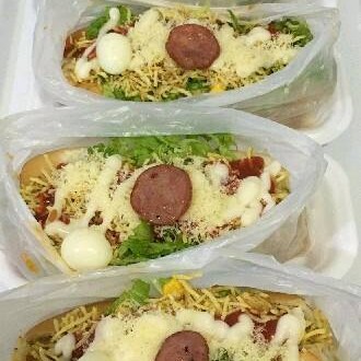 Pão Salsicha,milho,alface,batata Palha,ovinho Codorna Catchup Maionese Queijo Ralado
