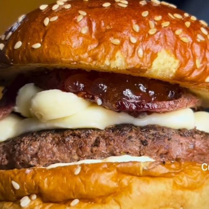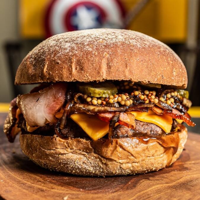 Pão brioche max 85g, hambúrguer artesanal 120g, bacon, Catupiry Original, geleia de pimenta, maionese hellmans.