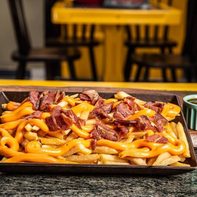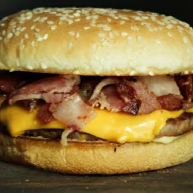 (pão, hamburguer, queijo cheddar, bacon, molho especial)