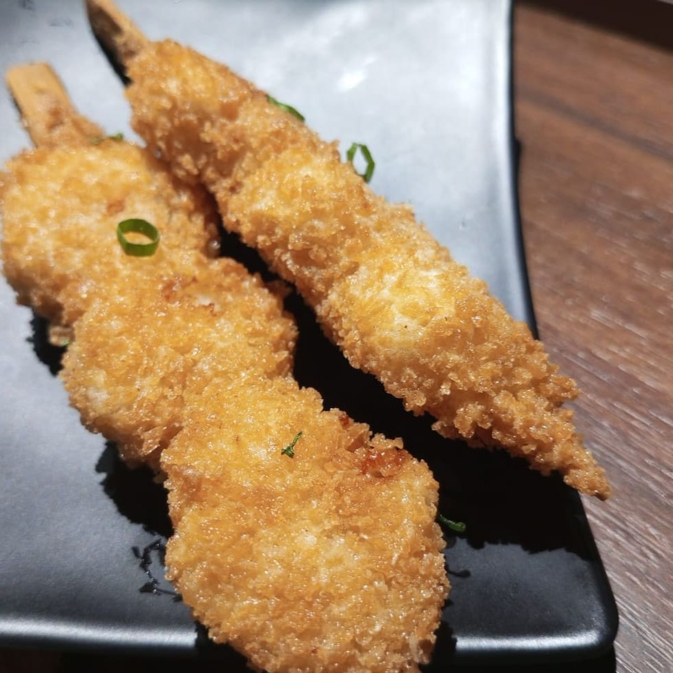 Deliciosa Lula no espetinho, empanado na farinha panko