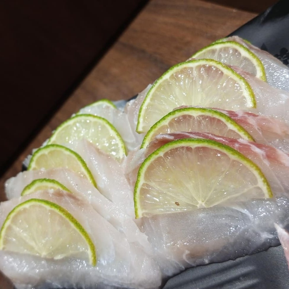 Cream cheese envolto em fatia de salmão. Finalizado com raspa de limão. #sashimi #salmão #comida #japonesa #fatias #kani #maçaricado #sushi