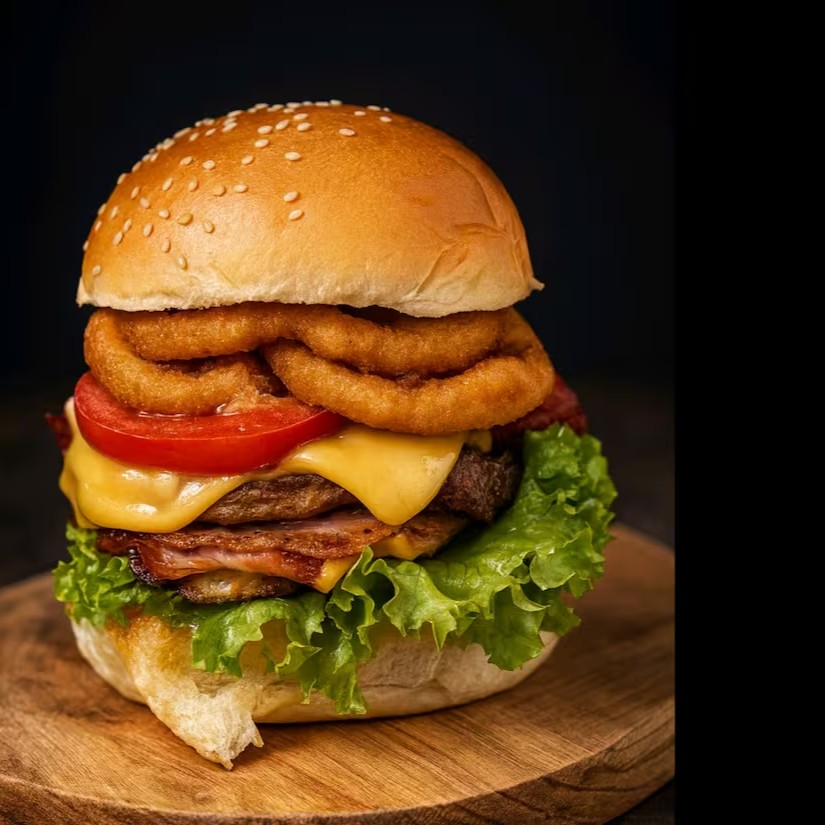 Pão, 2 Carnes, 2 Queijos, Bacon, Salada, 3 Anéis De