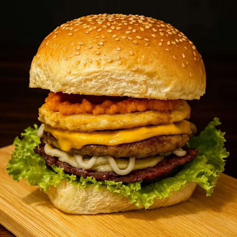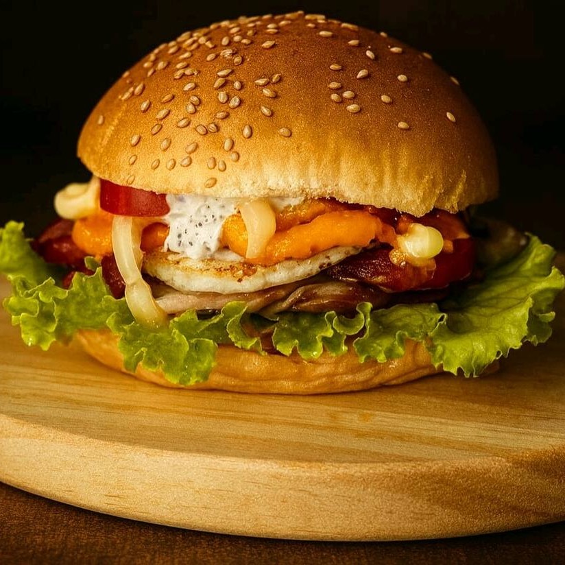 Pão, 2carnes, 2 Queijos,2 ovos Ovos, Bacon em dobro,